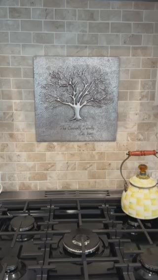 The Eternal Tree Copper Backsplash in Gray offers a modern, refined look while keeping the timeless warmth of handmade copper art. Trusted in over 10,000 kitchens worldwide, this backsplash blends durability with design, making it an elegant choice for contemporary spaces.