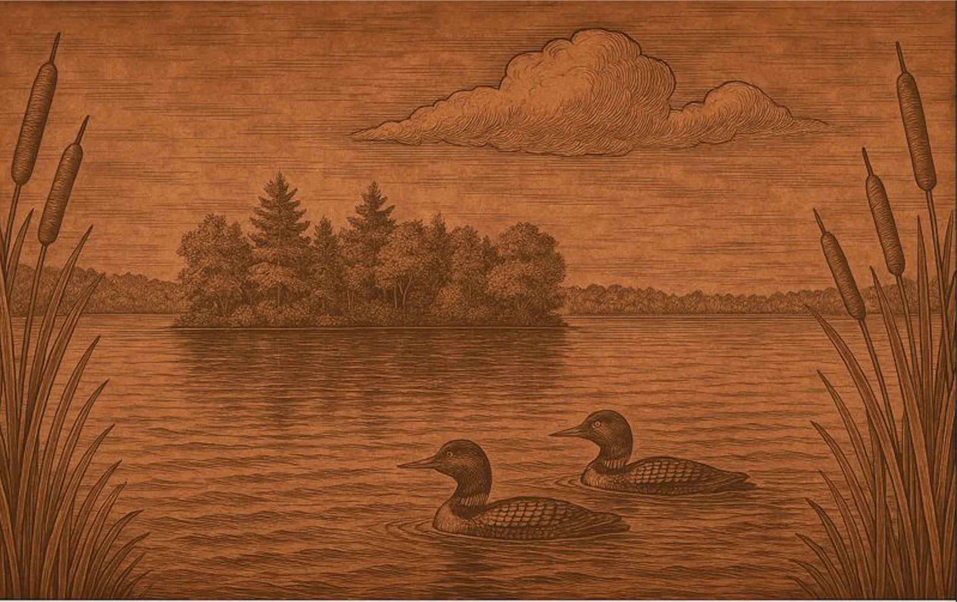 This Handmade Copper Lake Scene Wall Art features a peaceful forest shoreline with ducks gliding across the water, all formed in raised copper relief with fine hand-worked detail.