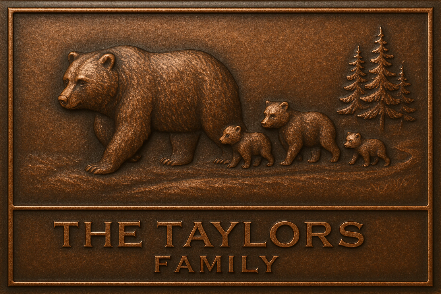Celebrate family strength and the spirit of the wilderness with the Bear Family Name Sign. Featuring a protective parent bear guiding cubs through the forest, this design captures the beauty of nature and the bond of family. Personalized with your family name, it’s a perfect keepsake for rustic homes, cabins, or as a heartfelt gift.